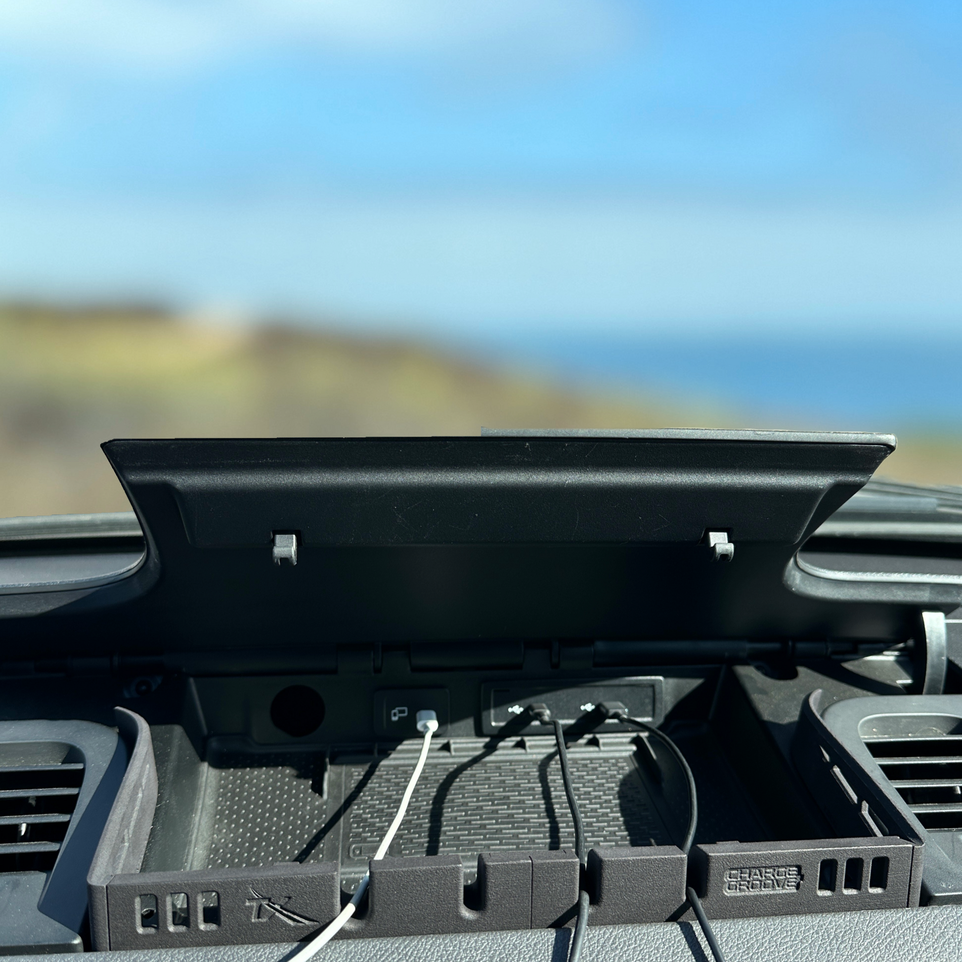 The Charge Groove is specifically engineered to hold open the portion of your Mercedes Sprinter dash that houses your charging ports, providing easy access and improved cable management. With this innovative accessory, you can optimize the use of your van's given ports, making it effortless to keep your devices charged and ready for action.