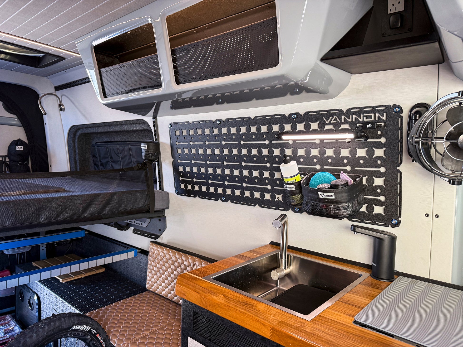 The VANNON Walle Panel is your go-to solution for converting any large wall surface into a fully functional, customizable storage system. Designed specifically for van builds, overland rigs, workshops, and mobile setups, this heavy-duty MOLLE panel makes organizing your gear simple and efficient.
